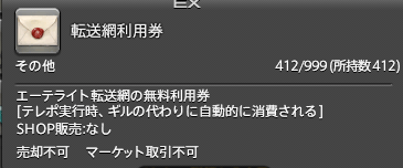 1回のテレポ代を完全に無料にできるアイテムが、この「転送網利用券」です。
