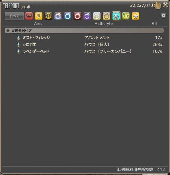 - 例: トライヨラ → (割引テレポ) FCハウス → (通常テレポ) リムサ・ロミンサ